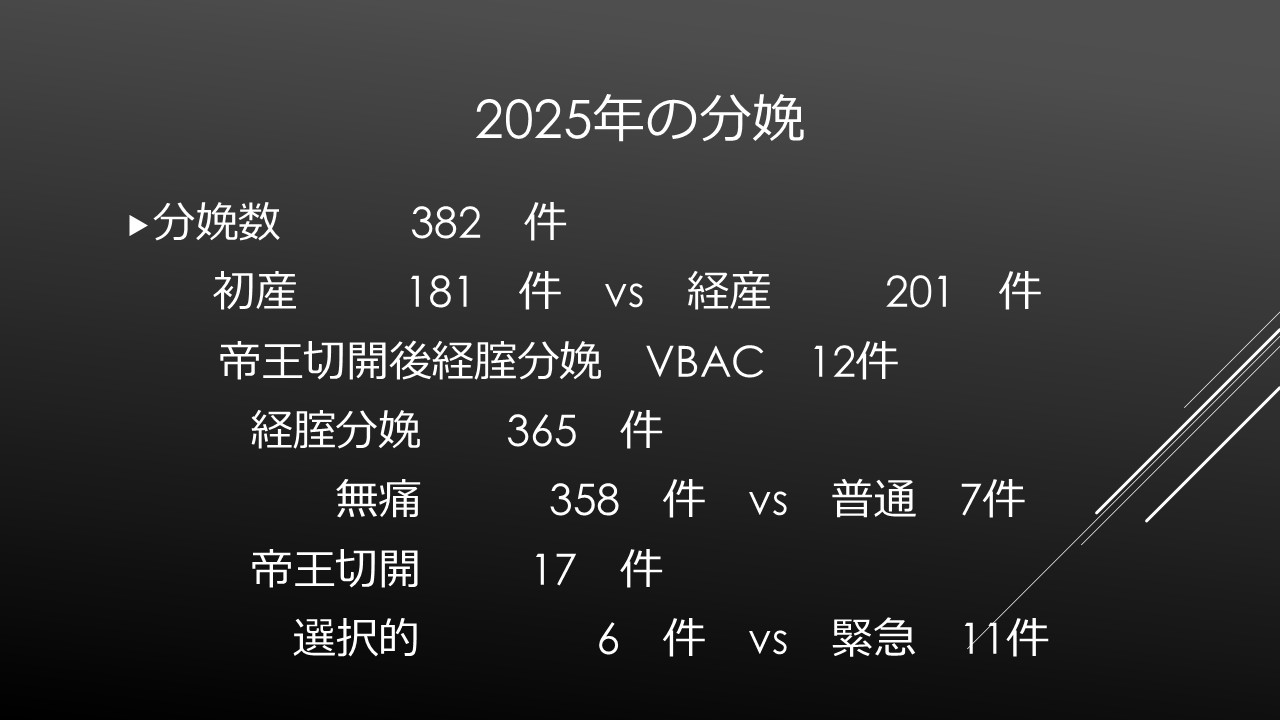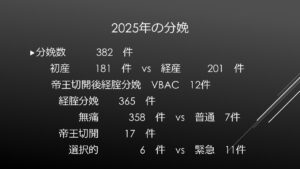 令和7年のまとめ①分娩382件 帝王切開4.5% TOLAC12件